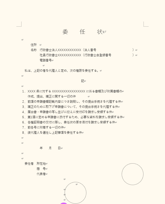 委任状(行政書士への手続き委任) B! テンプレート名委任状(行政書士への手続き委任)ダウンロード回数1回ジャンル個人向けのひな形カテゴリー委任状 テンプレート一覧ファイル形式Word色白印刷媒体A4イベント企業, 国・地方公共団体担当者より行政書士に手続きを委任する際に使用します。ダウンロード (Word 形式)